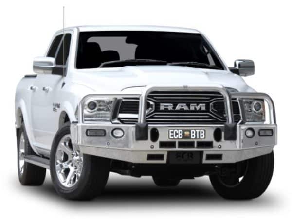 For the ultimate in frontal protection you will find it hard to go past the strength, quality and style of the ECB Winch Compatible Big Tube Bull Bars for your Ram 1500 Laramie. The single piece channel is fully welded and manufactured from high tensile, structural grade alloys to provide maximum strength. This no compromise design is engineered to accommodate up to a 16,000lb low mount winch that is attached to the chassis as part of the specifically designed steel mounting system ensuring a neat and sturdy fit. Our Winch Compatible Big Tube Bar® incorporates a full width, braced lower protection skirt. ECB LED light combinations, bumper lights, air directional cooling vents and an aerial bracket are all standard features. Your ECB Winch Compatible Big Tube Bar® is available in a mirror polished finish or choose from one of our low maintenance powder coat finishes. Our ECB Winch Compatible Big Tube Bar® is proudly manufactured in Australia and we offer a lifetime warranty.